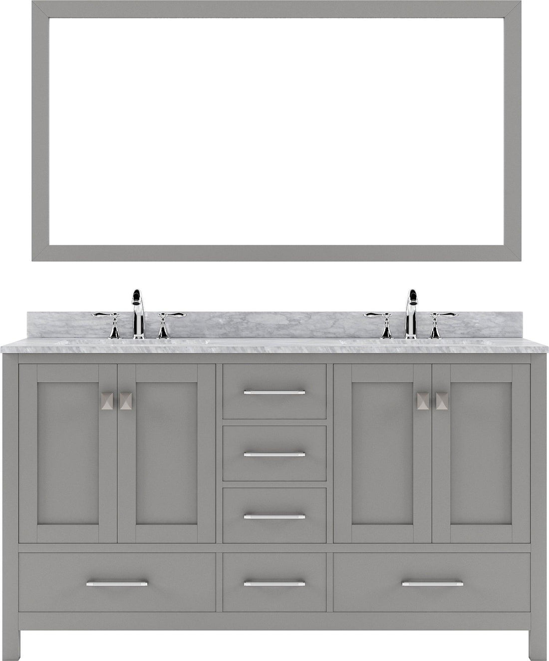 Caroline 60" Double Bath Vanity Set with Italian Carrara White Marble Top & Rectangular Double Centered Basin