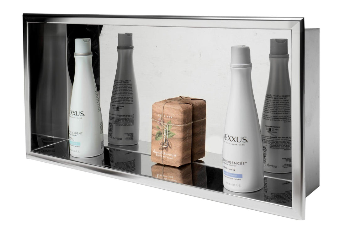 ALFI brand ABN2412-PSS 24 x 12 Polished Stainless Steel Horizontal Single Shelf Bath Shower Niche