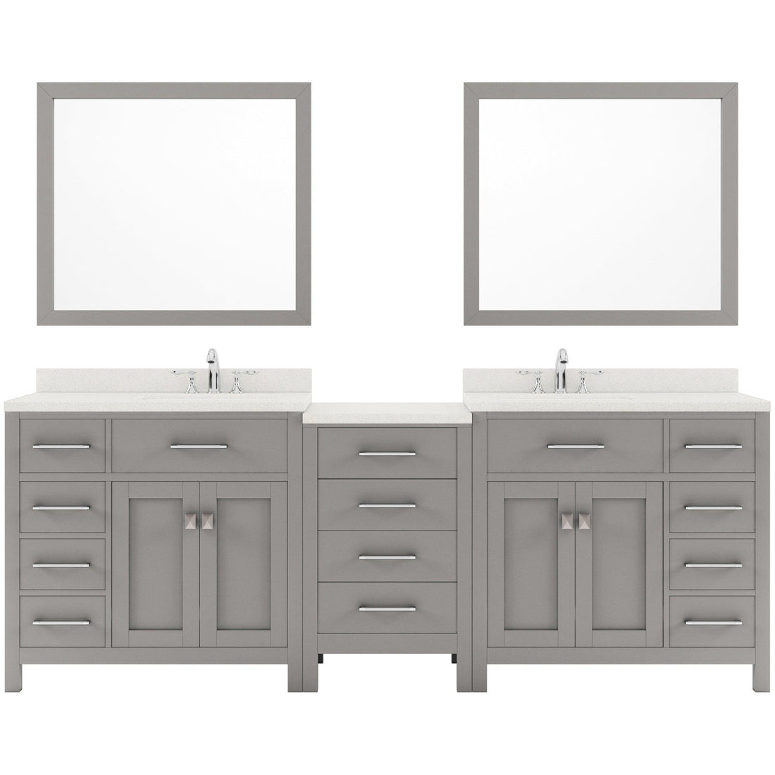 Caroline Parkway 93" Double Bath Vanity Set with Cultured Marble Quartz Top & Oval Right Offset Basin