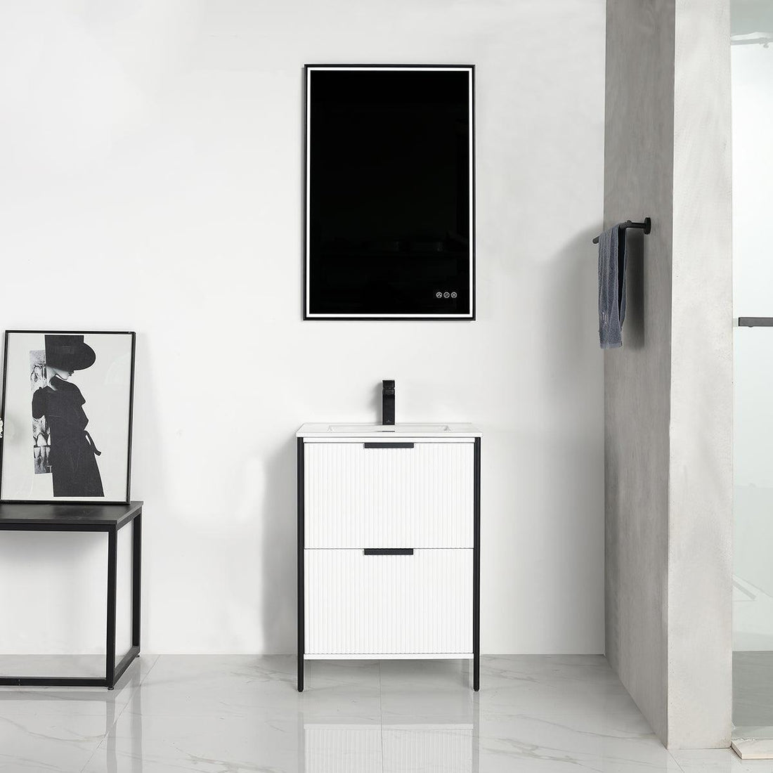 Blossom Thun 24″ Vanity with Droplet-Shaped Basin - LED Illuminated & 3D Diamond Pattern Design