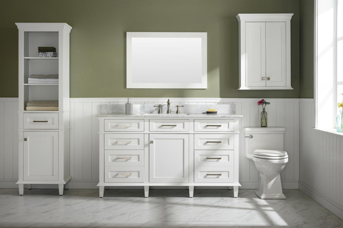Legion Furniture 60" White Finish Single Sink Vanity Cabinet with Carrara White Top - WLF2160S-W