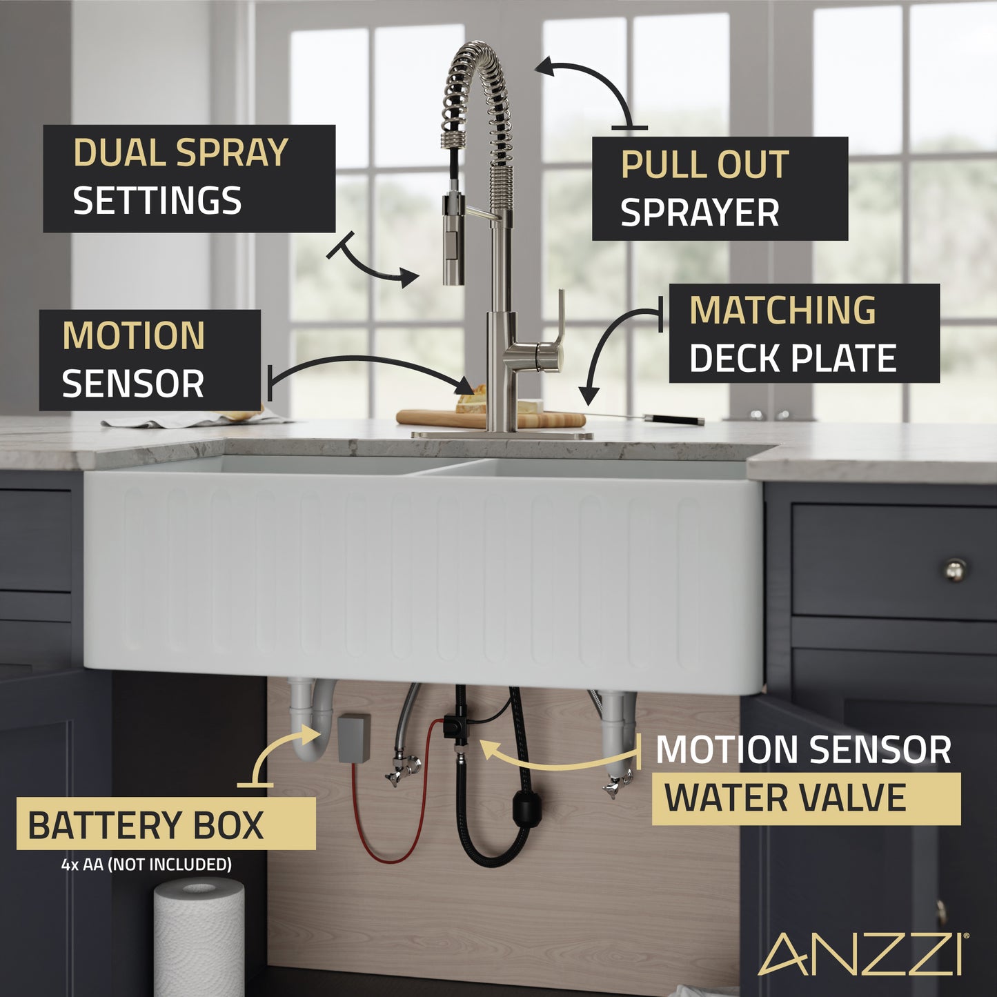 You’ll wonder how you ever lived without the touchless convenience of this premium kitchen upgrade! We built this faucet with the latest motion-detection technology so it’s simple to use, sanitary and super helpful — just wave your hand near the sensor to easily turn the water flow on or off. The sleek, stylish design features a pull-down spray head with two powerful spray modes and a swiveling spout. Available in three finishes — Brushed Nickel, Brushed Gold, Matte Black.