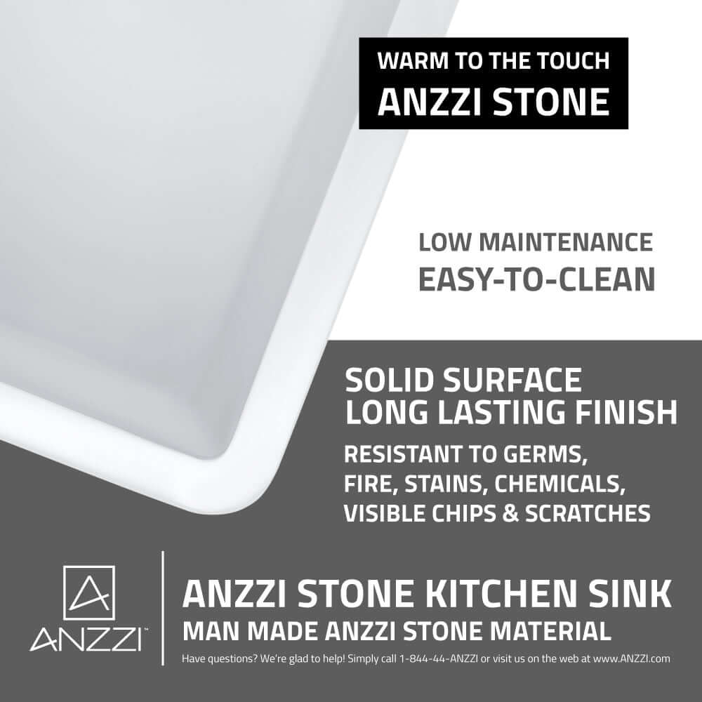 The renaissance of kitchen hardware has arrived with ANZZI’s ROINE series kitchen sinks. Crafted of rich Solid Surface man made ANZZI stone the ROINE grants a smooth, non-porous surface that is warm and inviting to the touch. But the beauty of an ANZZI stone surface is its uncanny resilience to germs, stains, discoloration, visible chipping and more. The solid core nature allows you to easily sand away scuffs and marks without effecting the finish. ANZZI sinks are crafted to stand the test of time both structurally and aesthetically.
