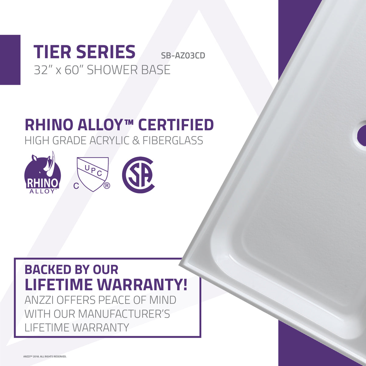 Tier 32 x 60 in. Center Drain Single Threshold Shower Base in White