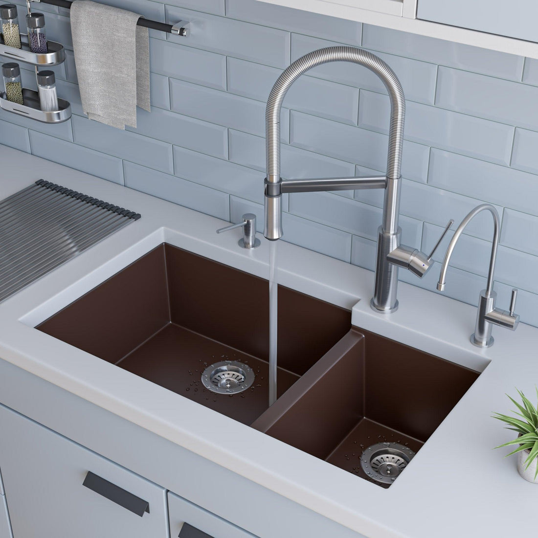 ALFI brand AB3319UM-C Chocolate 34" Double Bowl Undermount Granite Composite Kitchen Sink