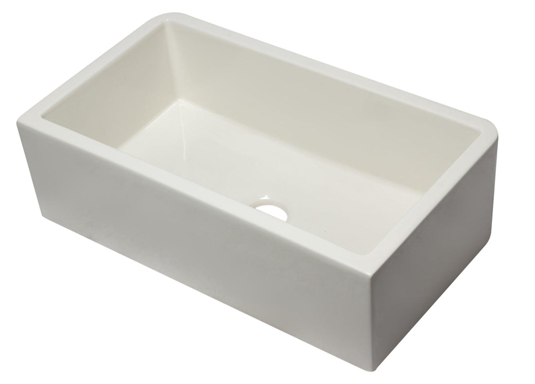 ALFI brand AB3318SB-B 33" Biscuit Smooth Apron Solid Thick Wall Fireclay Single Bowl Farm Sink