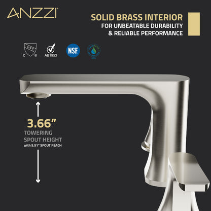 Sleek, simple and sophisticated, this faucet is crafted with appealing angles and crisp lines that bring ultramodern flair to any bathroom. Minimalist styling looks clean and uncluttered when matched to your sink. Sleek handles for hot and cold give precise control of water volume and temperature so you can adjust to your exact preference. The 1.2 gpm rate minimizes water usage while still delivering a strong flow. Durable brass construction is finished in a brilliant Brushed Nickel.
