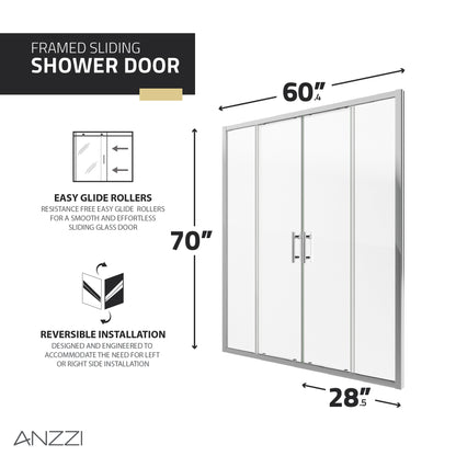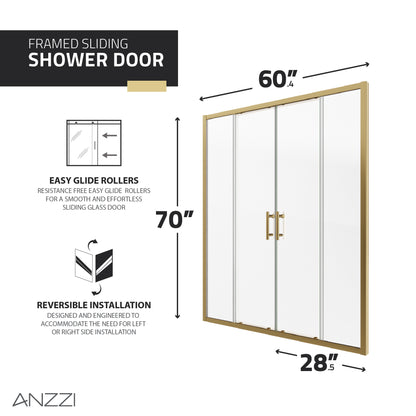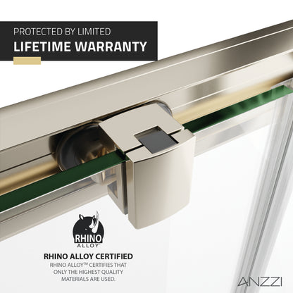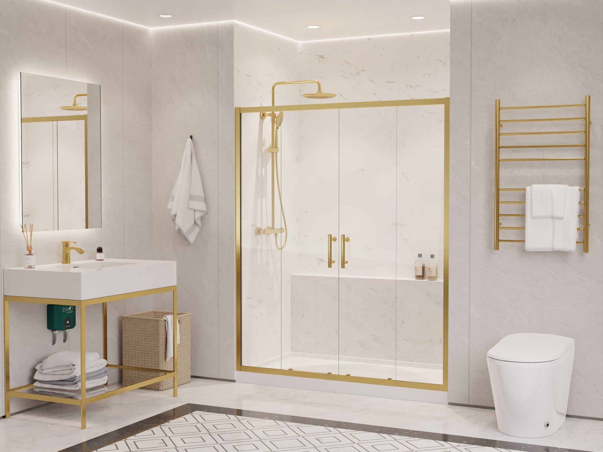 Sleek, subtle, yet stylish, ANZZI’s sliding shower door adds a welcome touch of elegance to any bathing space. The ultramodern good looks are matched to premium construction from top quality materials. ANSI-certified, tempered glass panels are strong, durable and safe. Tsunami Guard shielding repels water to prevent cloudy build-up. Easy glide rollers make opening and closing effortless. Aluminum hardware has a Brushed Gold finish that won’t lose its luster and looks gorgeous year after year.
