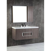 This unique modern vanity will make an incredible statement in your bathroom. This beautiful & sleek single sink wall mount vanity is made with solid birch in a gray brown finish & properly sealed to stand against bathroom humidity. It has three cabinet doors providing ample hidden storage for towels and toiletries. Dimension: 48Wx18.31Dx21.85H, Wood, Gray Brown, White ceramic sink, Chrome finish hardware, Blum soft close door hinges, Faucet and mirror not included