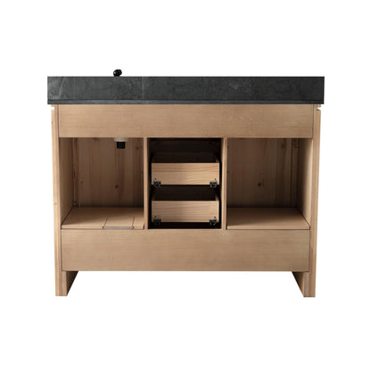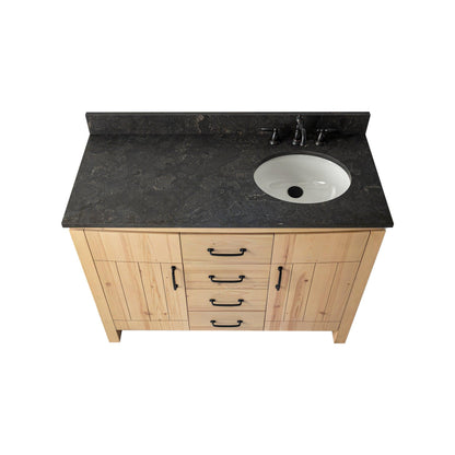 Upgrade Your Bathroom with the Bellaterra 48-inch Freestanding Vanity! Bring elegance and durability to your space with this expertly designed vanity. Constructed from solid fir wood, it offers the natural beauty of wood while ensuring exceptional stability and resistance to warping. The luxurious blue limestone countertop adds a refined touch with its rich bluish-gray tones and natural veining, delivering a timeless and sophisticated appeal. Featuring dovetail drawers with soft-close technology, this vanity combines superior craftsmanship with smooth functionality. Pre-assembled for hassle-free installation, it's the perfect blend of premium materials and lasting quality.