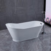Bring luxury to your home bathroom with this beautiful acrylic double slipper soaking tub. There is no need to compromise on style or comfort with its elegant ergonomic design. Being elevated on one end, it provides maximal back support for complete comfort, relaxation, and deep soaking on either side. This freestanding bathroom centerpiece is seamlessly jointed and has a high gloss finish. With its clean lines and sleek styling, this bath will complement any bathroom.