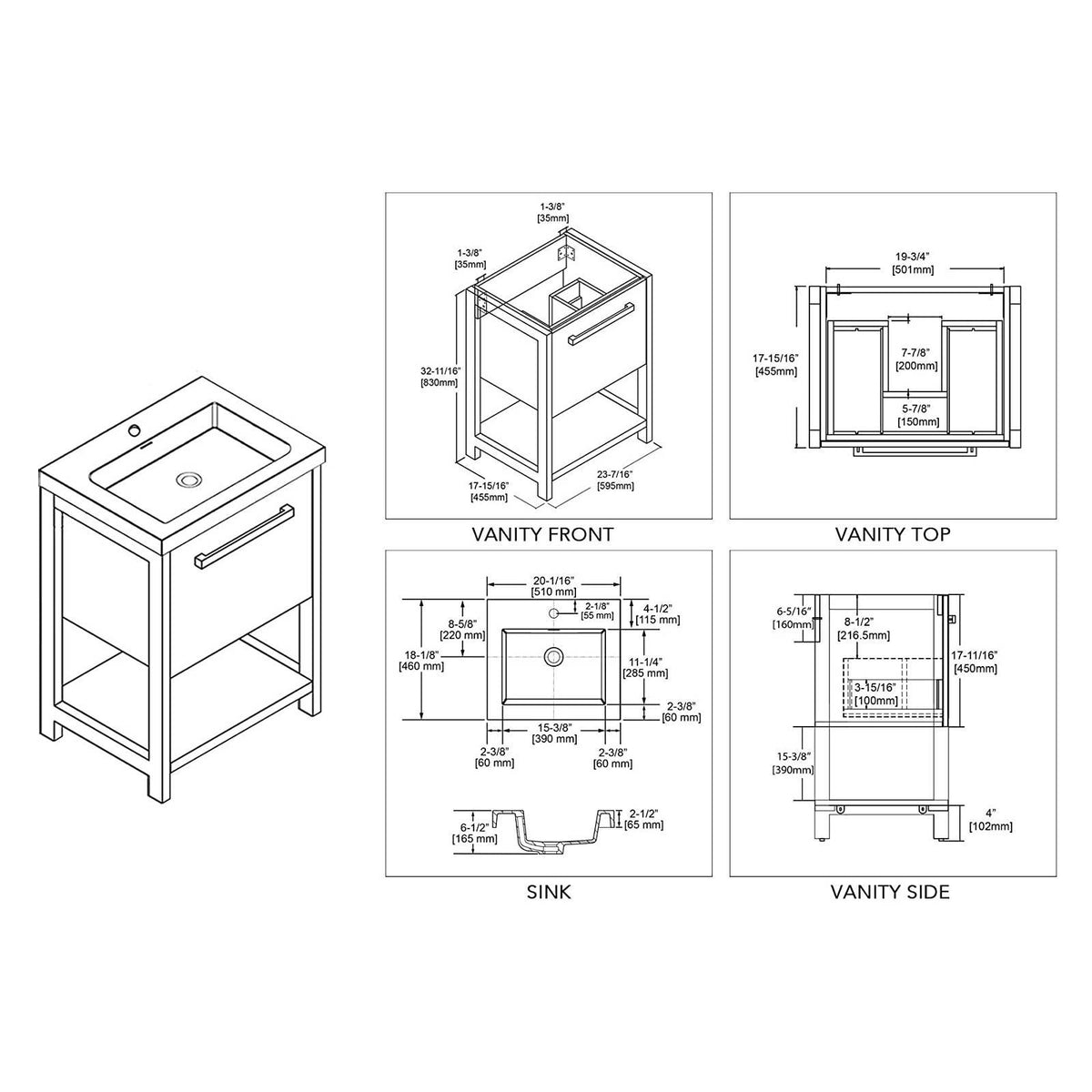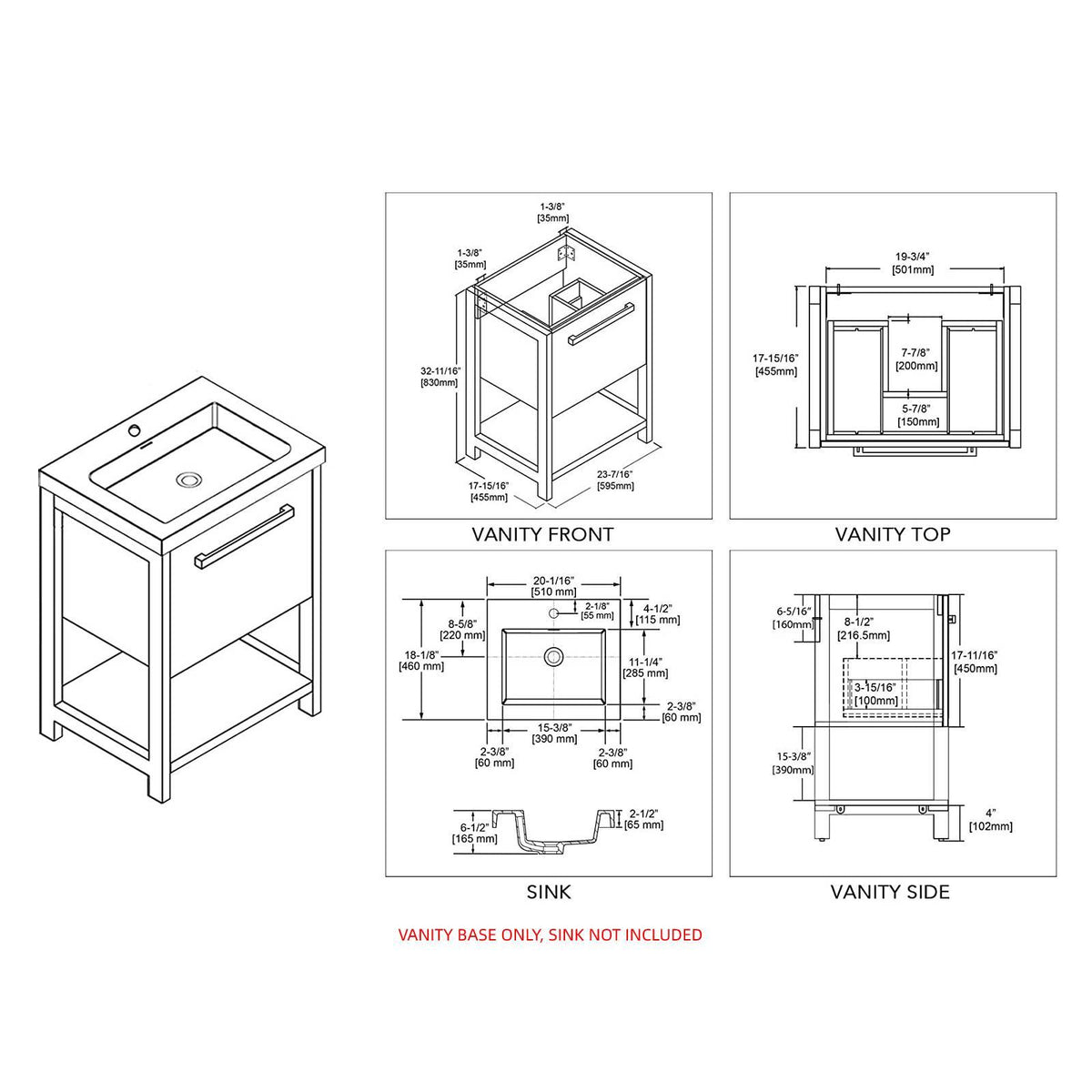 - INCLUDED: Vanity Base / Acrylic Sink.