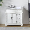 Enhance your small to medium bathroom with the traditional elegance of Silkroad Exclusive's 36-inch Vanity. This piece has a versatile left or right-hand sink bowl location, which is perfect for accommodating any layout. The vanity boasts a vintage green finish, bringing your space a classical yet refreshing look. Its luxurious Carrara white marble top with an ogee edge profile adds a touch of sophistication. The white ceramic undermount sink, designed for 8" widespread faucets, is complemented by oil-rubbed bronze hardware. While the doors lack soft-close hinges, the four drawers offer smooth and quiet operation with soft-close slides. Constructed from natural stone and solid wood, this freestanding vanity is durable and stylish, fitting seamlessly into your bathroom decor.