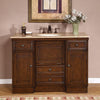 Embrace classic sophistication with our 48-inch Single Sink Bathroom Vanity, where transitional style meets functionality. In a rich walnut finish, this vanity showcases the beauty of natural stone with a travertine countertop featuring an elegant ogee edge. The ivory ceramic undermount sink adds a touch of warmth and pairs perfectly with the pre-drilled holes for an 8" widespread faucet. Crafted with a solid wood structure, it's robust and boasts the certification of TSCA Title VI. Equipped with three doors, four drawers, soft-close slides, and antique brass finish hardware, this freestanding vanity provides ample storage with a refined aesthetic. Make a statement of enduring design in your bathroom with this exquisite vanity piece.