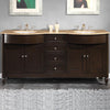 Discover the epitome of modern elegance with our 72-inch Double Sink Bathroom Vanity. Crafted with the finest natural stone, this vanity features a sumptuous dark walnut finish that exudes sophistication. The luxurious travertine countertop edged with a classic ogee profile, adds a timeless charm, while the white ceramic under-mount sinks offer a seamless look. Designed for the contemporary home, this vanity provides ample storage with six soft-close drawers and four doors. The brushed nickel finish hardware complements the modern style, ensuring that this piece is a functional addition to your bathroom and a statement of luxury. Ideal for larger spaces, this freestanding vanity is TSCA Title VI certified, ensuring high-quality standards. Upgrade your bathroom with this stunning vanity and create a beautiful and practical space.